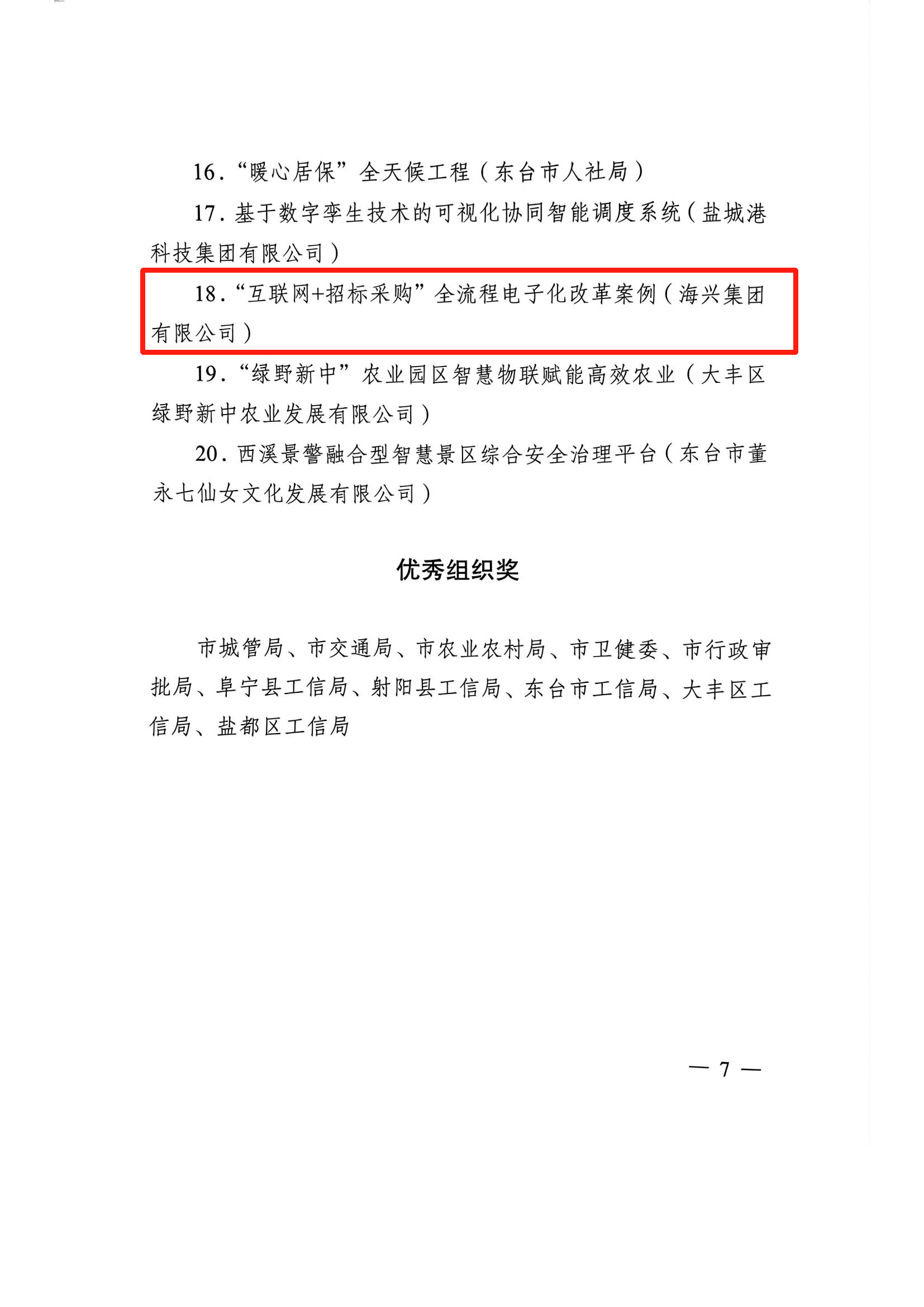 近日,“數(shù)字鹽城”建設領導小組辦公室公布了2023年“數(shù)字鹽城”應用場景優(yōu)秀案例名單,海興集團“智慧工地指揮中心”案例獲評一等獎。