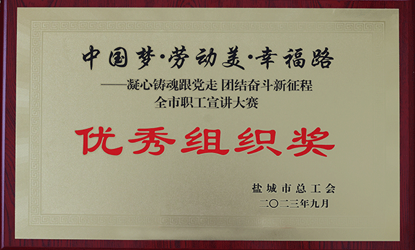 為深入學習貫徹習近平新時代中國特色社會主義思想和黨的二十大精神。市總工會開展了“強國復興有我”群眾性宣傳教育活動。9月20日,“中國夢·勞動美·幸福路——凝心鑄魂跟黨走 團結(jié)奮斗新征程”全市職工宣講比賽決賽在射陽縣工人文化宮舉行,海興集團獲“優(yōu)秀組織獎”,工會職工姜晏獲優(yōu)秀獎。2023-09-22 -